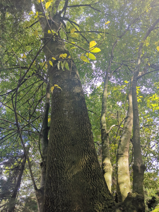 Árboles de hasta 40 metros de altura (20–30 m es lo más frecuente). Crece en laderas, barrancas y cañadas. Fructifica de julio a septiembre (anual).